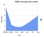 This graph shows live results of all survey respondents discomfort score after PEMF use in the the PEMFLive Online Survey. This system gathers accumulates user response statistics, and provides a registry of responses of all types.